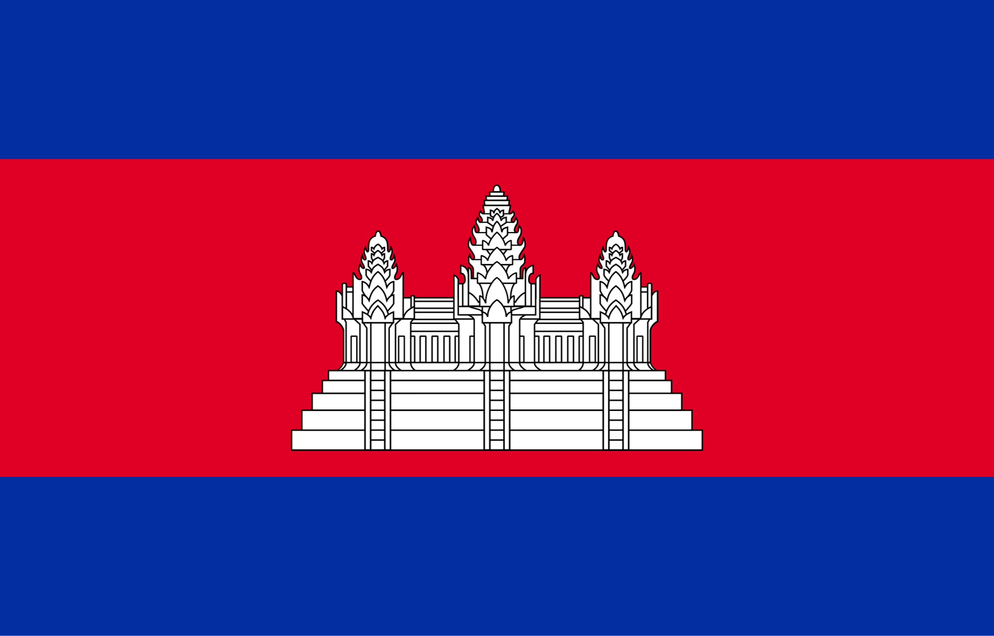 【國名】柬埔寨王國 Kingdom of Cambodia 【首都】金邊 Phnom Penh 【面積】181,035平方公里 【國旗】這面國旗早在1948年就被使用,因為政變和內戰持續不斷,國旗經過多次更迭之後,於1993年又被重新採用。藍色代表皇族,紅色是表示為自由而戰的勇氣和決心,中間白色的建築物是吳哥窟表示高棉文化的進步象徵。 【國徽】1993年採用此國徽,亦為王徽,為斗篷形,兩邊對稱。內由上而下繪有唵、劍和寶瓶,環以稻穗,飾以勳章。上方為王冠,尖端放射出光芒。斗篷分別由左方的象鼻獅和右方的獅子守護,兩者皆持華蓋。下方飾帶以高棉語書有「柬埔寨王國之國王(ព្រះចៅ ក្រុង កម្ពុជា)」 。 【位置】位於中南半島南部。東和東南部同越南接壤,北部與寮國相鄰,西和西北部與泰國毗鄰,西南瀕臨暹羅灣。 【人口】16,926,984人(2020年)。 【語言】官方語言為高棉語,少數人講英語、法語。 【宗教】佛教爲國教,大多數人信奉佛教。占族多信奉伊斯蘭教,少數城市居民信奉天主教。 |