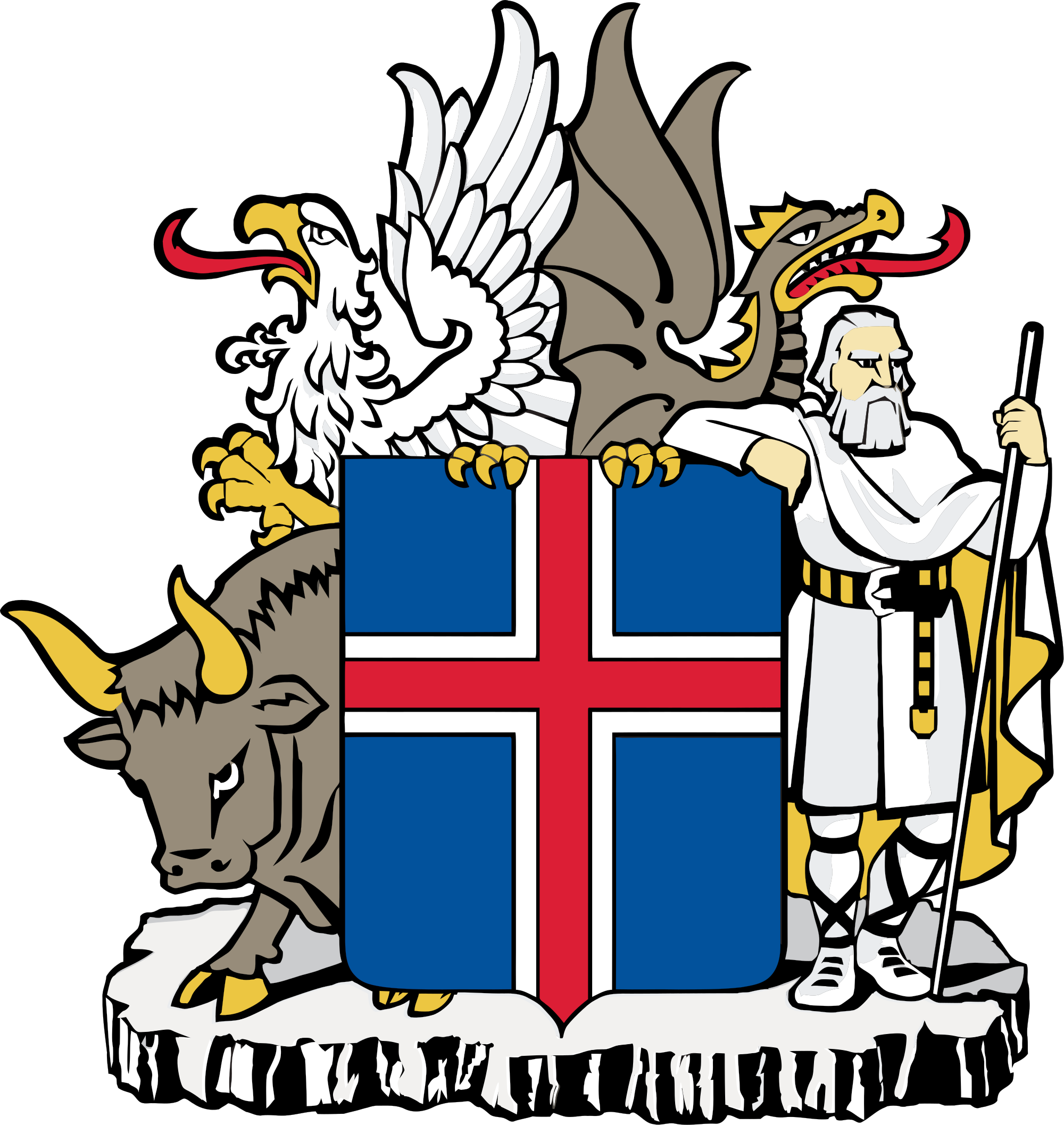政府旗 18:32 民用旗 18:25 【國徽】國徽為一盾徽,繪有國旗的圖案。盾徽上端有一隻紅舌金爪的白隼和一隻白齒紅舌金爪的龍,左側是一頭黑牛,右側站著一位身披斗篷的巨人。隼、龍、牛和巨人都是冰島傳說中保護冰島四角的守護神。盾徽下端的石塊代表冰島多岩石的漫長海岸。《世界之環》一書記載丹麥國王欲征服冰島,派遣魔術師至冰島。魔術師在冰島的4個地區被鳥、龍、公牛、巨人撃退,丹麥國王因此放棄。 【位置】位於北大西洋中部,靠近北極圈,爲歐洲第二大島。 【人口】350,734(2020年)。 【語言】官方語言為冰島語,英語爲通用語言。 【宗教】主要為基督教路德教派。 |
