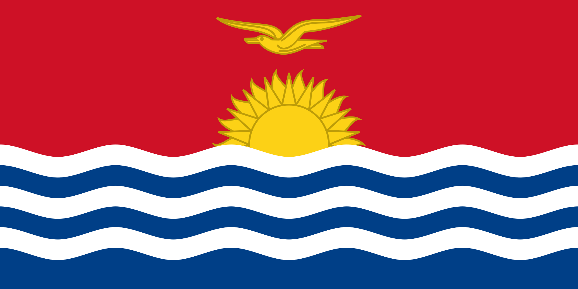 【國名】吉里巴斯共和國 Republic of Kiribati 【首都】塔拉瓦 Tarawa 【面積】811平方公里 【國旗】獨立時制定國旗,吉里巴斯為南太平洋上的島國,島嶼羅列在赤道之間,由於位於國際換日線上,因此是世界上一天最早開始的國家,國旗上的太陽就是這個意思。振翅高飛的軍艦鳥象徵希望,下方有藍白相間的波浪,藍色代表南太平洋,三條白色波紋代表組成吉里巴斯的三個群島,整個圖案符合南太平洋國家的境界。 【國徽】國徽是一面盾徽。圖案與國旗同。下面飾帶以吉里巴斯語書寫「興旺、和平、富強(TE MAURI TE RAOI AO TE TABOMOA)」。 【位置】位於太平洋中部的島國,由 三十三個島嶼組成,分屬吉爾伯特群島、大洋島、菲尼克斯(鳳凰)群島和萊恩(線島)群島。是世界上唯一縱跨赤道、橫越國際換日線的國家。 【人口】111,796人(2002年)。 【語言】官方語言為英語,通用語言爲吉里巴斯語 。 【宗教】主要為羅馬天主教和基督教新教。 |